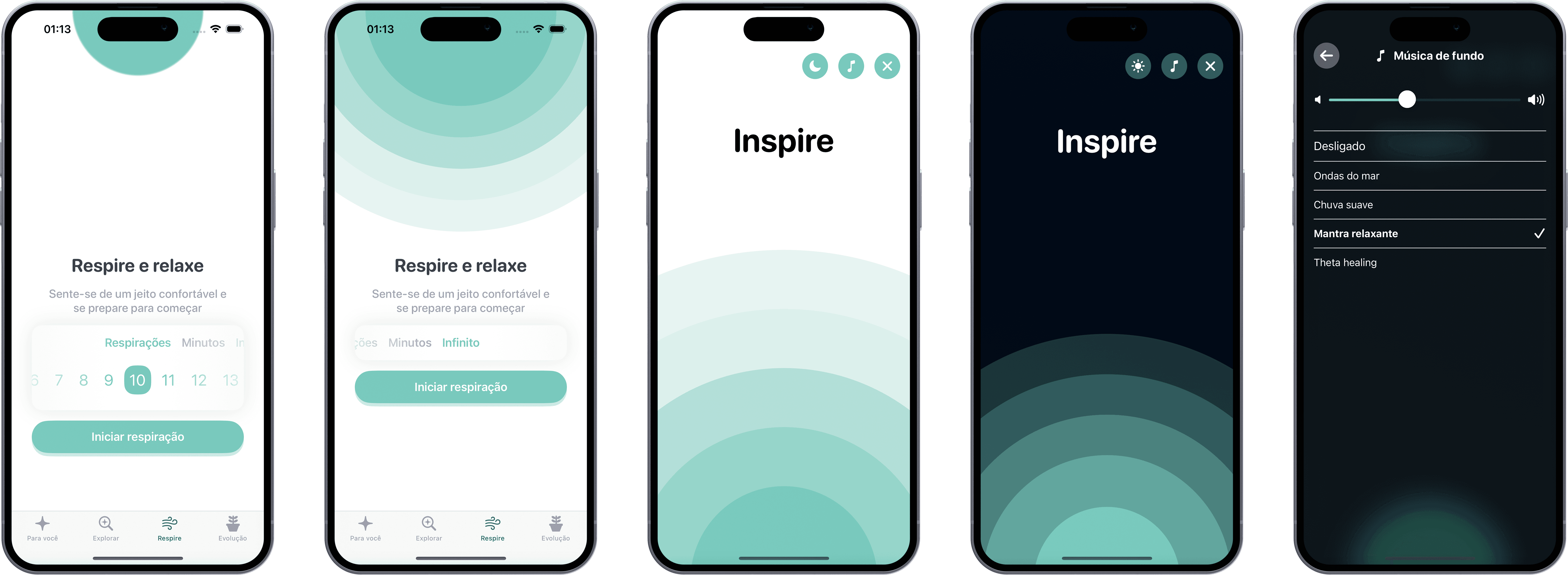 Introduzimos uma funcionalidade de meditação que complementava as sessões de yoga do app. A funcionalidade foi projetada para oferecer uma experiência calmante e relaxante, que os usuários poderiam facilmente integrar em suas rotinas diárias, em qualquer lugar e a qualquer hora.